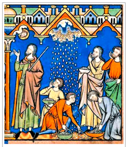 The Manna from Heaven, The Crusader Bible MS M.638, fol.9v c.1254, The Morgan Library and Museum, New York City, USA.